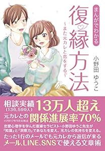 内容紹介たった1行のメールでも元カレからの返信が来る メール、LINE、SNSで使える文章術 相談実績 13万人(136,599人)越え・元カレとの関係進展率70% ※2017年5月末時点 恋愛心理学を学んだ復縁セラピスト・小野田ゆうこ先生が 「知識」と「洞察力」であなたを変え、元カレの気持ちを変える。 まんがと解説でわかりやすく説明。 小手先のテクニックに頼って復縁するのは簡単。復縁を望む多くの女性が「復縁をすること」 が目的になってしまっていることが多く、また同じような問題にぶつかって別れしてしまうケース が少なくありません。 本当のゴールは「末永く、二度と離れる事のない復縁」です。 相手の気持ちを理解し、もう2度と別れないために身につける相手への思いやりの1冊です。 <▼ 本の目次> はじめに Prologue(プロローグ) 「復縁できる」ってどういうこと? Story 朱里さんとの出会い 1 復縁できないのは、あなたが「復縁の仕方」を知らないだけ 2 「行動」を変えれば、必ず結果も変わる 3 「なんでこんなに頑張っているのに復縁できないの?」と思ってしまっていませんか? Chapter 1 「復縁できる自分になる」魔法のメソッド Story 彼はどんな気持ちだった? 1 復縁を目指す上で一番大切なこと 2 ゴールを決めて、復縁プランを立てる? 成功するプランの立て方 3 復縁の基本、「相手のペースに合わせる」とは? 4 「もっと知りたい」と思ってもらえる女性になる Column1 音信不通だった彼から復縁したいと告白されました! Chapter 2 相手の気持ちを汲み取る方法 Story 「男性ならでは」を理解しよう 1 男性脳と女性脳 2 新たな事へチャレンジする重要性 3 外見を磨くなら、□□を参考にする 4 大きな目標を達成するためには Column 2 遠距離だからこそのテクニックで復縁できました! Chapter 3 音信不通でも大丈夫!「復縁に繋がるメール・LINE」とは? Story こんなLINEはもらって嬉しい! 1 そもそも、メールやLINEの役割とは? 2 別れた後、最初に送る文面の心得 3 相手の趣味や好きなもので信頼関係の土台作り 4 相手にとって「メリットのある連絡」とは? Column 3 「大人な彼にべったりだった私」はもう卒業します! Chapter 4 もしも相手に新しい恋人ができてしまったら? Story もう...復縁できないの? 1 否定せず、「最高の友人」になる 2 正しく「褒める」事で、好印象を与えていく 3 恋人に負けない魅力の伝え方 4 上手な駆け引きのタイミング Column 4 一回りも年下の彼だけど、わかり合えて良かったです! Chapter 5 断られないお誘いの仕方 Story 彼と会うときの心掛けは? 1 デートは準備で 割決まる 2 好かれる仕草、嫌われる仕草 3 次のデートに繋げるテクニック 4 相手から誘ってもらうには Column 5 不倫していた主人から再び愛される日々、幸せです! Chapter 6 一生の「幸せ」を手に入れるために Story 卒業テスト 1 復縁を決定づける3つの条件 2 相手の昔と今を比較しない 3 同じ失敗を繰り返さないために 4 「幸せ」を長続きさせるコツ Column 6 何度も別れ話を繰り返してきましたが、これで最後にできそうです! Epilogue 復縁してわかる、本当の幸せとは? 終わりに出版社からのコメント今回、書籍購入者特典もございます。 初回無料相談キャンペーンにて、無料相談をすると 「ネットで読める E-Book 『30日で復縁マニュアル』プレゼント」 絶対復縁宣言 http://fghui.net/商品の説明をすべて表示する